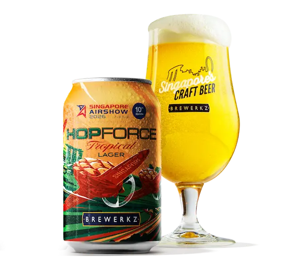 Crafted for Singapore Airshow 2026, Hopforce is a tropical lager engineered for crisp refreshment with a clean, airy finish. Brewed with pilsner malt, jasmine rice, and wheat, it’s light-bodied yet flavourful. A subtle hint of kaffir lime leaf adds a citrusy lift, making this beer bright, breezy, and ready for takeoff. No turbulence, just pure refreshment.